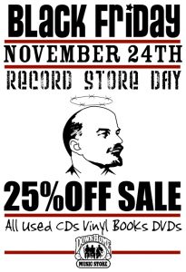 25% off all used merchandise CDs, LPs, 45s, 78s, DVDs, books, etc.