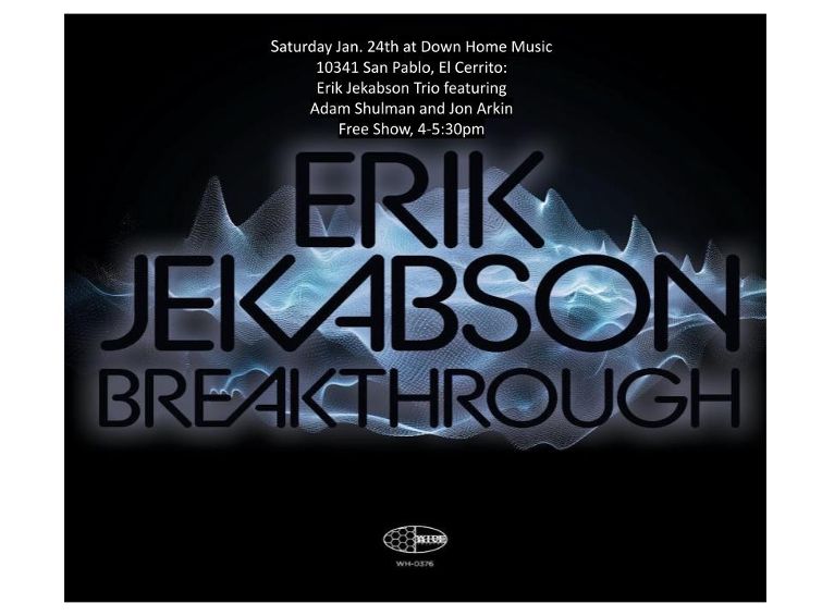 More great music at Down Home Music. Saturday 24 at 4pm: Erik Jekabson Trio live and free. With Adam Shulman & Jon Arkin. JAZZ!!!!