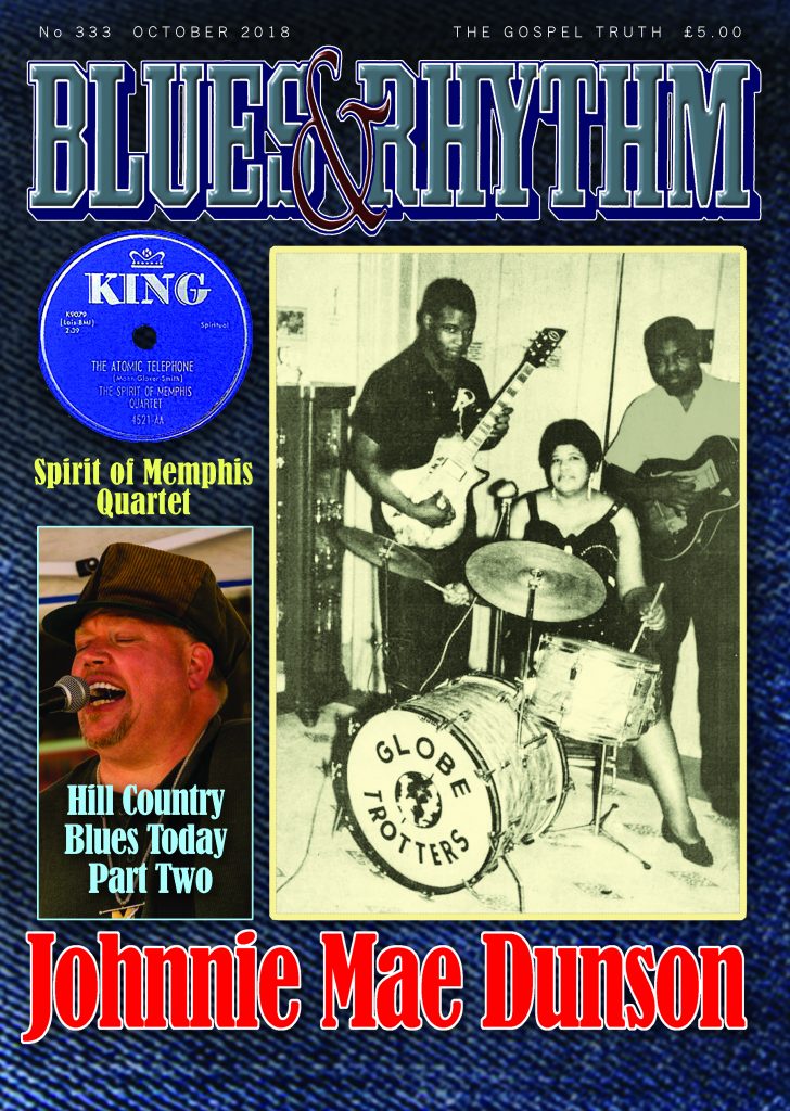 • Blues & Rhythm magazine no. 333 – October 2018: Johnnie Mae Dunson; Aretha Franklin; Spirit of Memphis Qt. and more