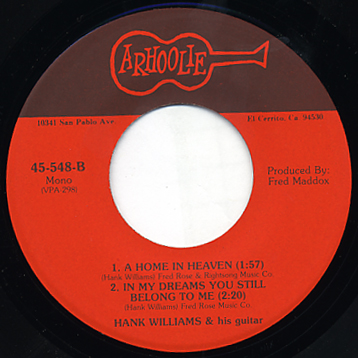 • Hank Williams – I’m Going Home / Mother is Gone / A Home In Heaven / In My Dreams You Still Belong to Me (EP) / Arhoolie 45-548