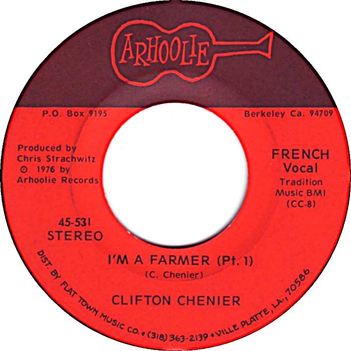 • Clifton Chenier – I’m A Farmer (Pt. 1 – French vocal) / I’m a Farmer (Pt. 2 – English vocal) / Arhoolie 45-531