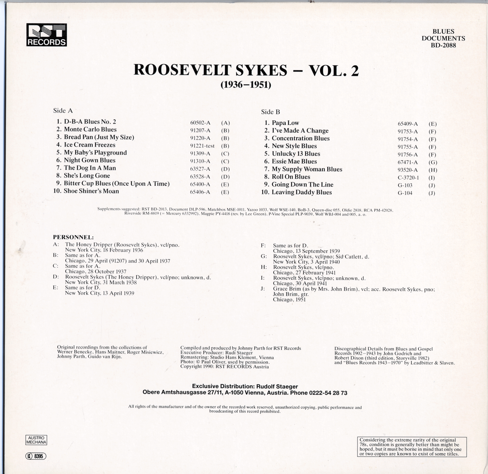 Roosevelt Sykes Vol. 2 (1936-1951) BD-2088 LP