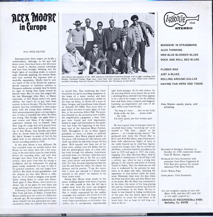 Alex Moore – In Europe / Arhoolie LP-1048