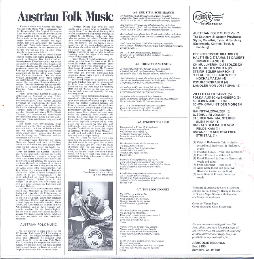Austrian Folk Music II Western Provinces – various artists / Arhoolie LP-3003