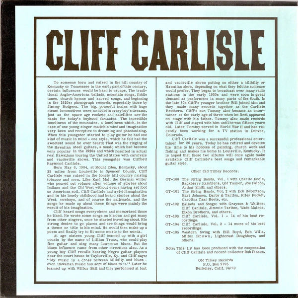 Cliff Carlisle, Vol. 2 / Old-Timey LP-104