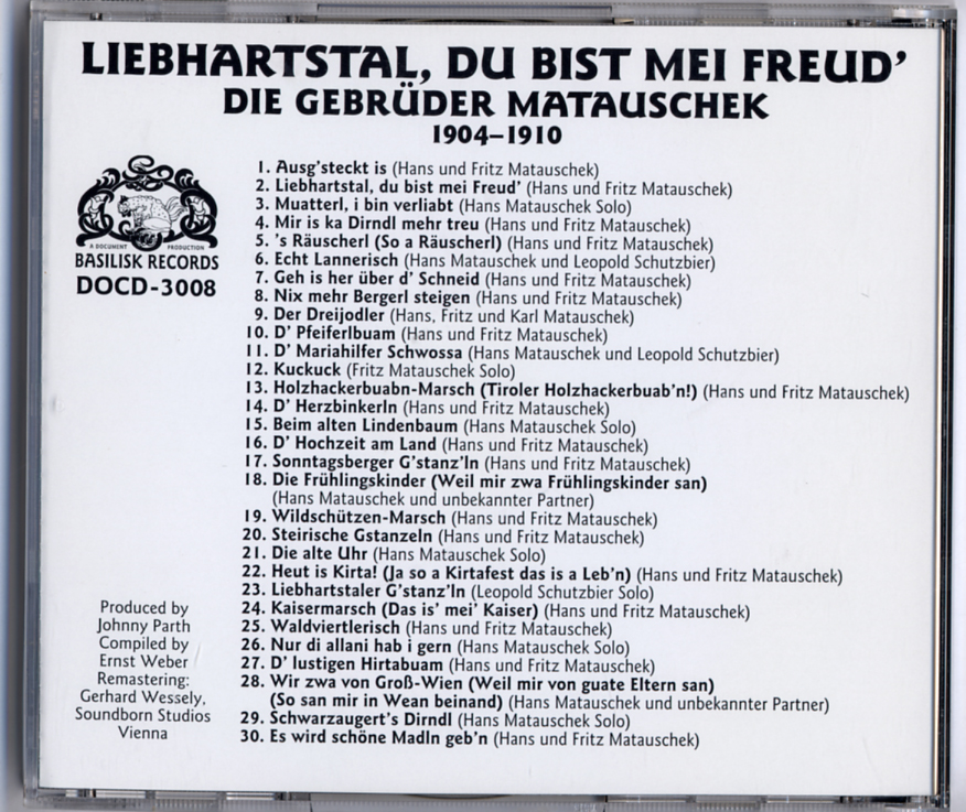 Die Gebrüder Matauschek (The Matauschek Brothers, 1904-1910) – Liebhartstal, Du Bist Mei Freud’ / Document CD-3008