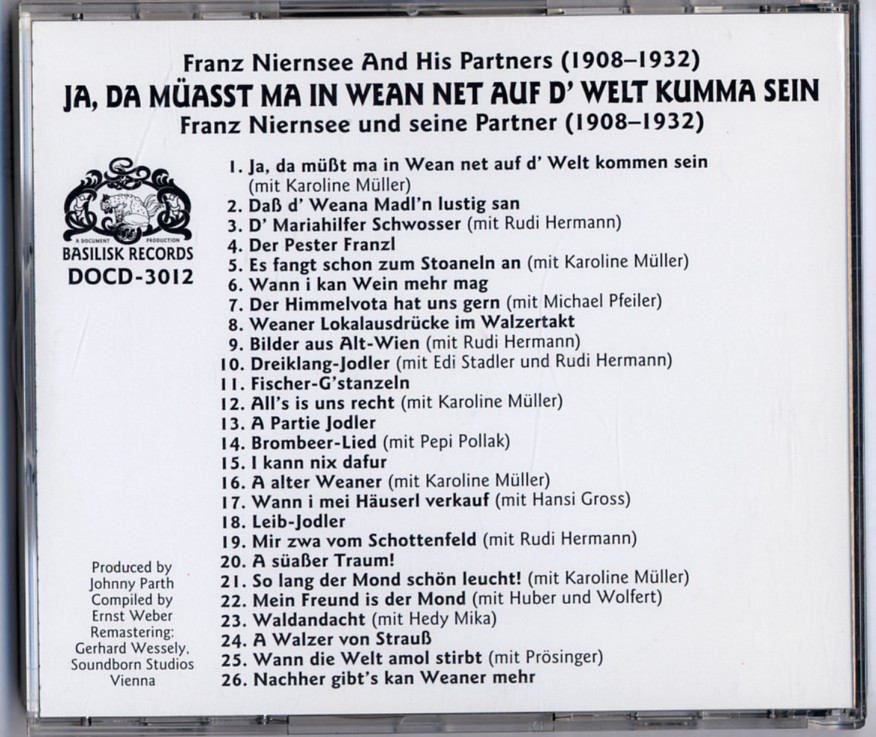 Franz Niernsee & his Partners (1908-1932) – Ja, Da Müasst Ma in Wean net auf D’Welt Kumma Sein / Document CD-3012