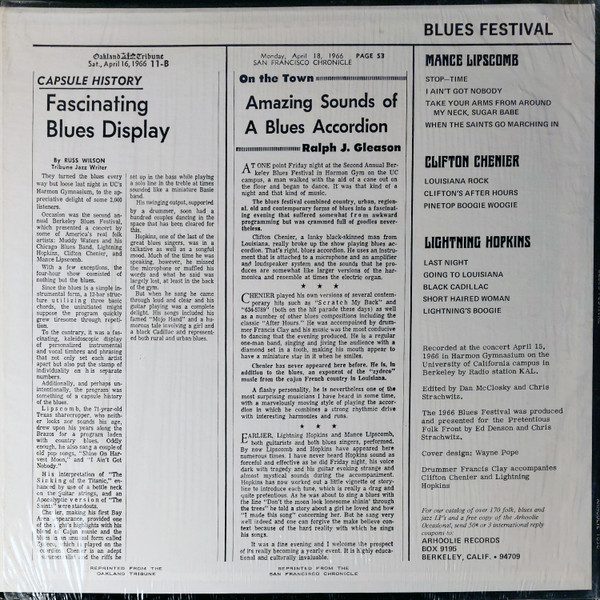 Lighting Hopkins / Clifton Chenier / Mance Lipscomb – 2nd Annual Berkeley Blues Festival / Arhoolie LP-1030