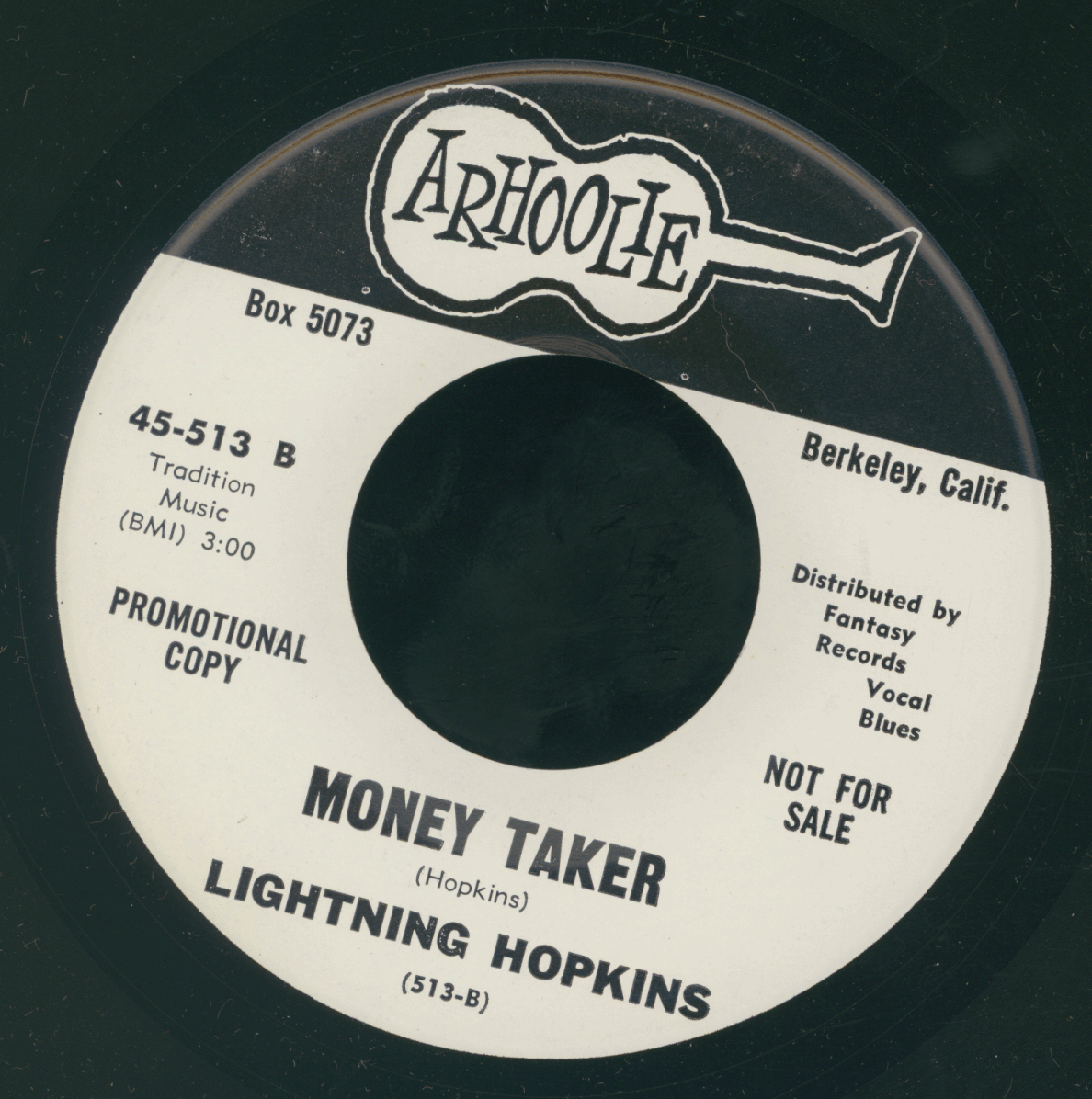 Lightnin’ Hopkins – Come on Baby / Money Taker / Arhoolie 45-513