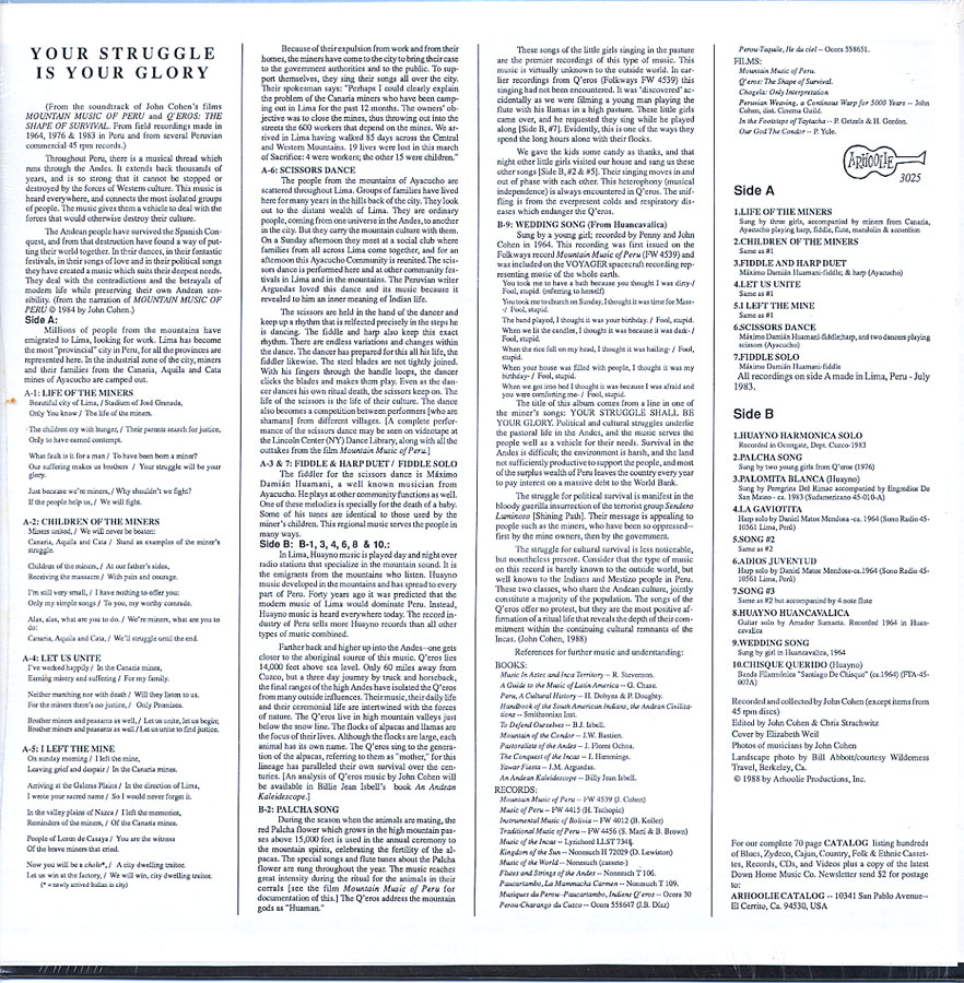 Music Of Peru – Your Struggle Is Your Glory – Various Artists / Arhoolie LP-3025