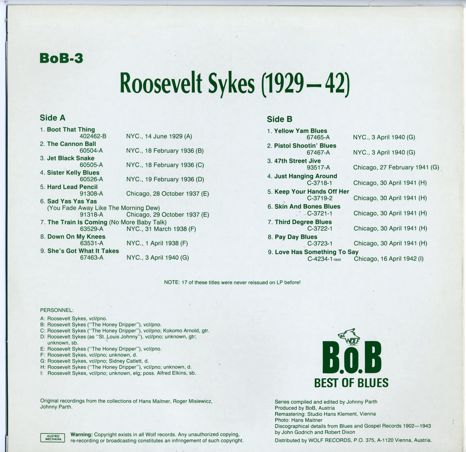 Roosevelt Sykes (1929-1942) BoB-3 LP