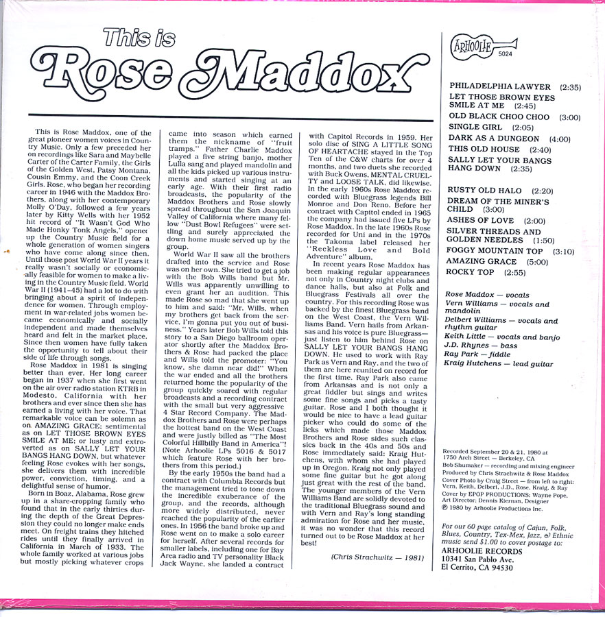 Rose Maddox & Vern Williams Band / Arhoolie LP-5024