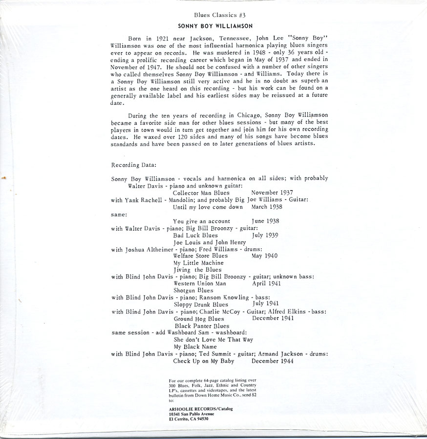 Sonny Boy Williamson 1937-1941 Vol. 1 / Blues Classics LP BC 3