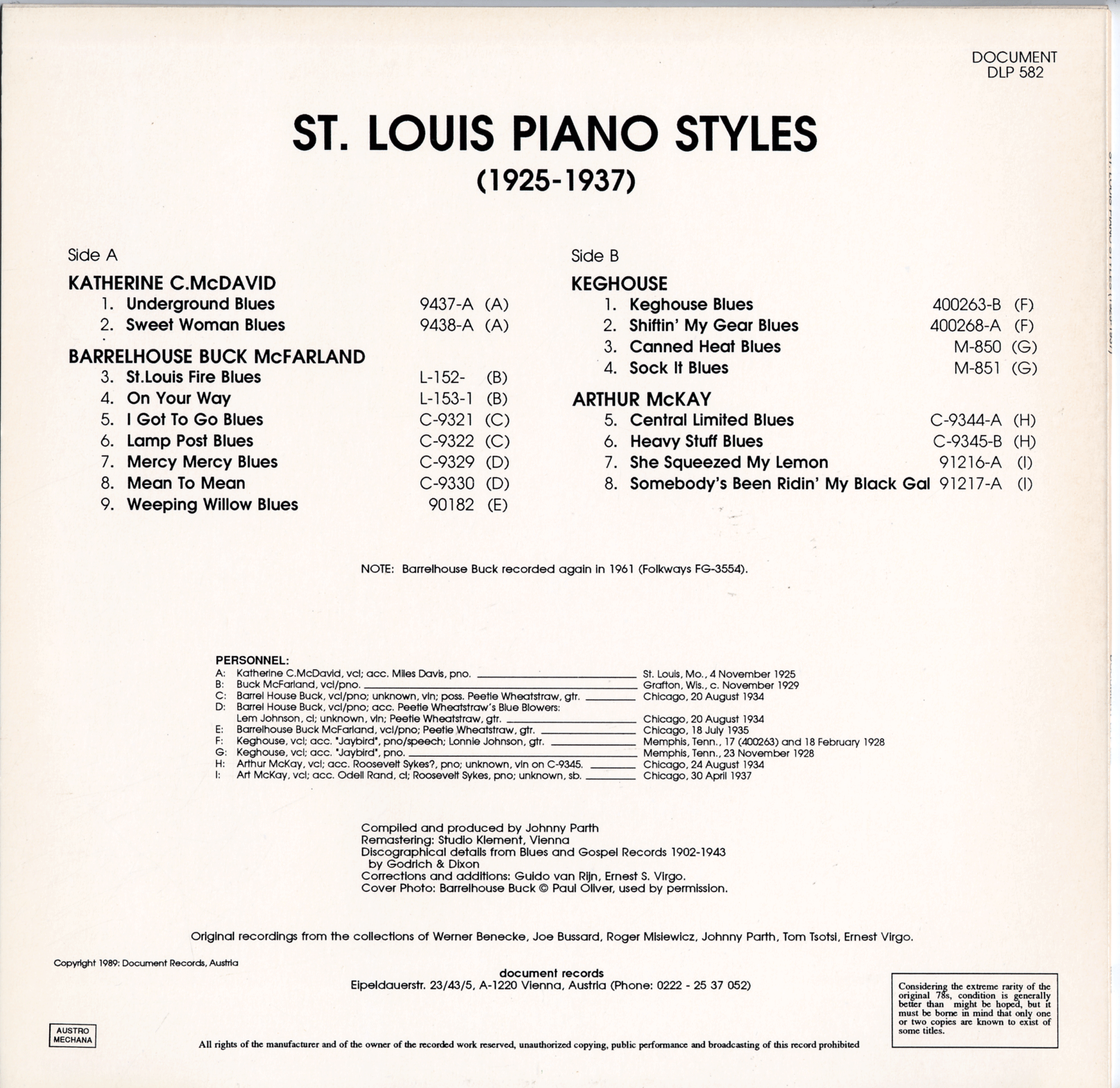 St. Louis Piano Styles 1925-1937 DLP 582
