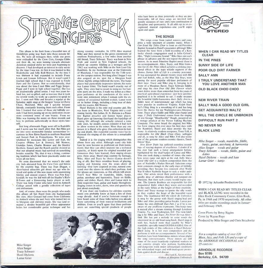 Strange Creek Singers – Mike Seeger Hazel Dickens Etc./ Arhoolie LP-4004