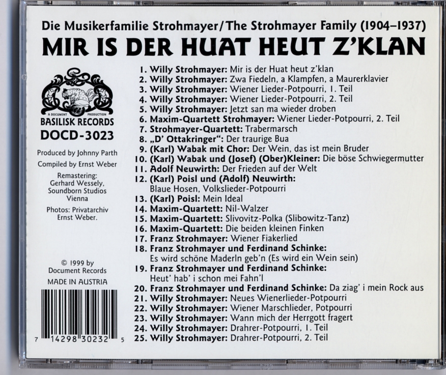 The Strohmayer Family – Mir is der Huat Heut Z’Klan (1904-1937) / Document CD-3023