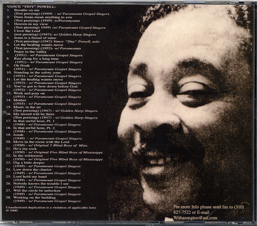 Recorded 1949-1955. Accompanied on different tracks by Paramount Gospel Singers the Golden Harp Singers the Paramounts and the Original 5 Blind Boys of Mississippi.