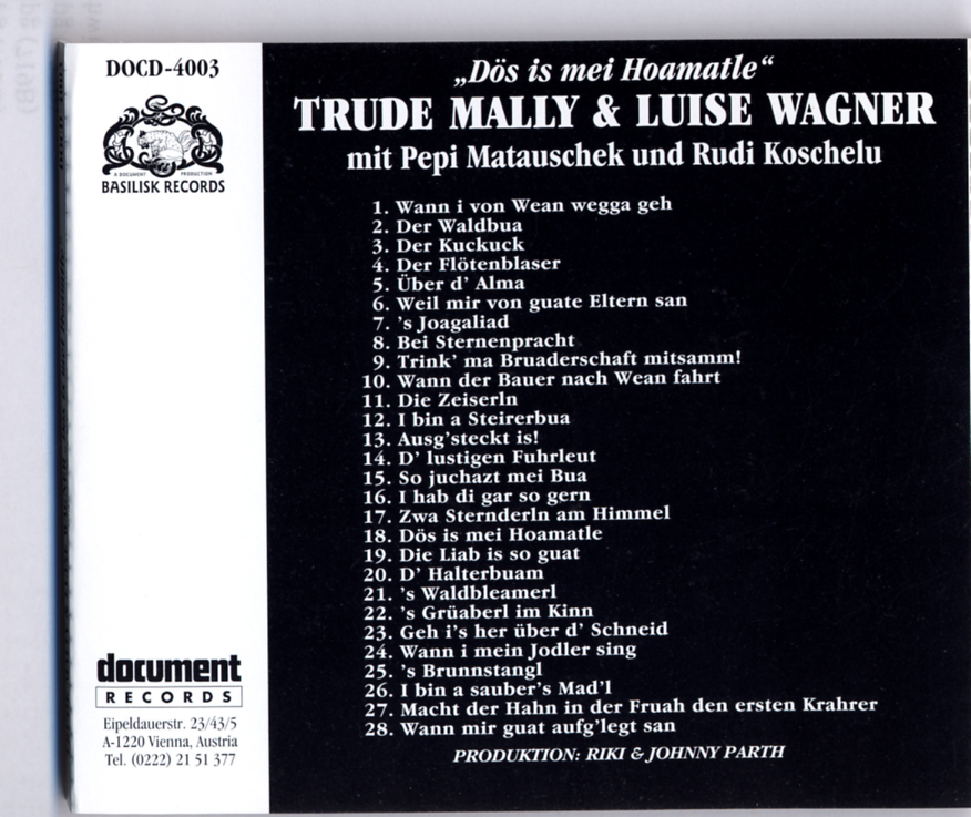 Trude Mally & Luise Wagner – Dös is mei Hoamatle / Document CD-4003