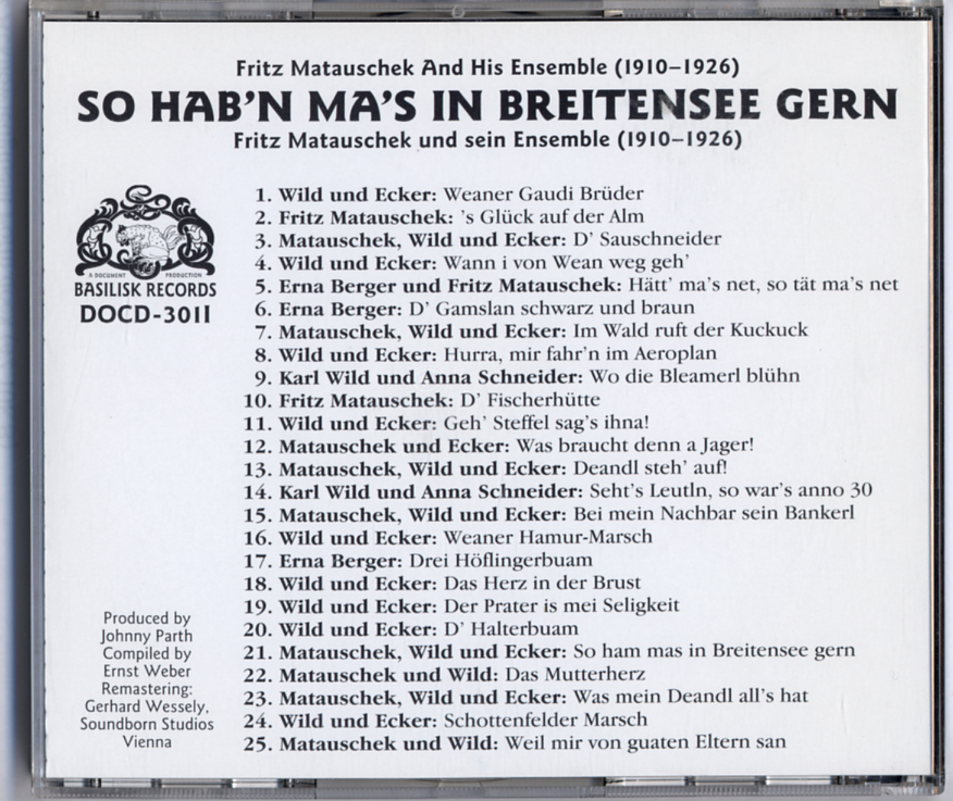 Fritz Matauschek & his ensemble – So Hab’n Ma’s in Breitensee Gern (1910-1926) / Document CD-3011