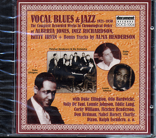 This, the first of three volumes features the work of four female blues singers. Three are obscure names whilst Alberta Jones whose recordings dominate this collection stands out as the star. As with the vast majority of the CDs featuring female classic blues singers in the Document Catalogue, this collection is given double strength by the inclusion of some excellent accompanists including Fletcher Henderson and his Orchestra backing Inez Richardson. Duke Ellington and Otto Hardwicke lend a hand with two of Alberta Jones numbers and Alma Henderson is in the company of DeLoise Searcy on piano and Lonnie Johnson on guitar on her first two recordings followed by Eddie Lang on her two remaining titles.