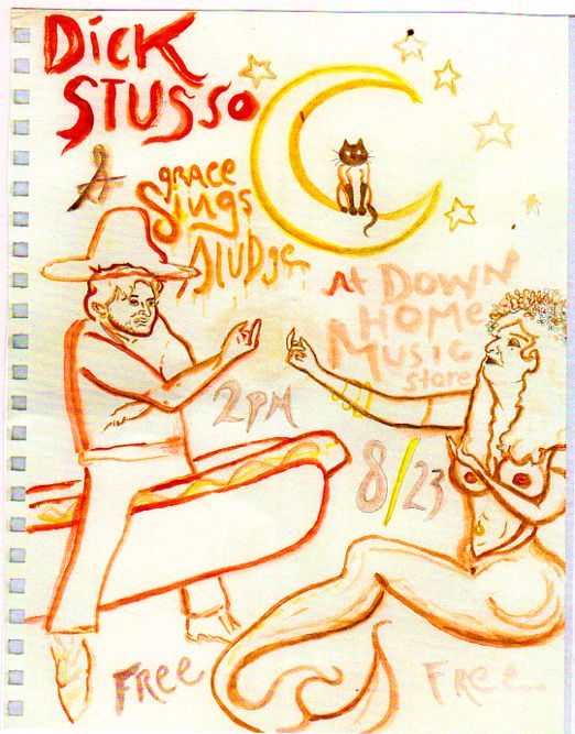 | Spooky, slow, dance-able, folk/rock (or so I’m told). https://www.hardlyart.com/collections/dick-stusso https://gracesingssludge.bandcamp.com/album/life-with-dick-3 Art by Grace Sings Sludge |