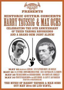 Starting at 2PM Tompkins Square presents folk guitarists Harry Taussig & Max Ochs. They were both featured on a (now vintage) sampler LP, ‘Contemporary Guitar – Spring ’67’, along side John Fahey, Robbie Basho, and Bukka White.
